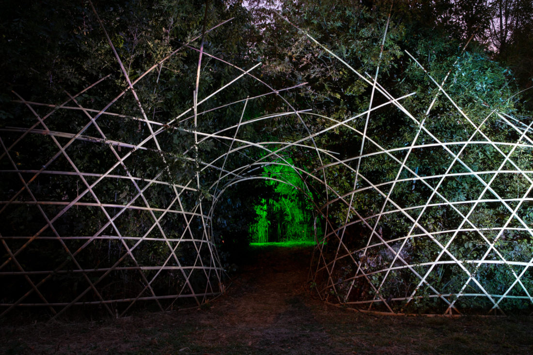S’inspirant de techniques traditionnelles propres à l’artisanat du bambou, la proposition déploie un ensemble de structures végétales sur une séquence des berges de la Garonne. Le tressage des structures épouse la végétation à l’apogée de son cycle estival. Les lignes souples s’élèvent et s’entrecroisent, les surfaces ajourées du motif Kagome désignent et protègent les îlots de prêles et de ronces. Le visiteur est guidé dans son cheminement vers le fleuve.